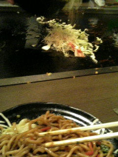 上の写真は私の取り皿と、もんじゃを作ってるとこ。